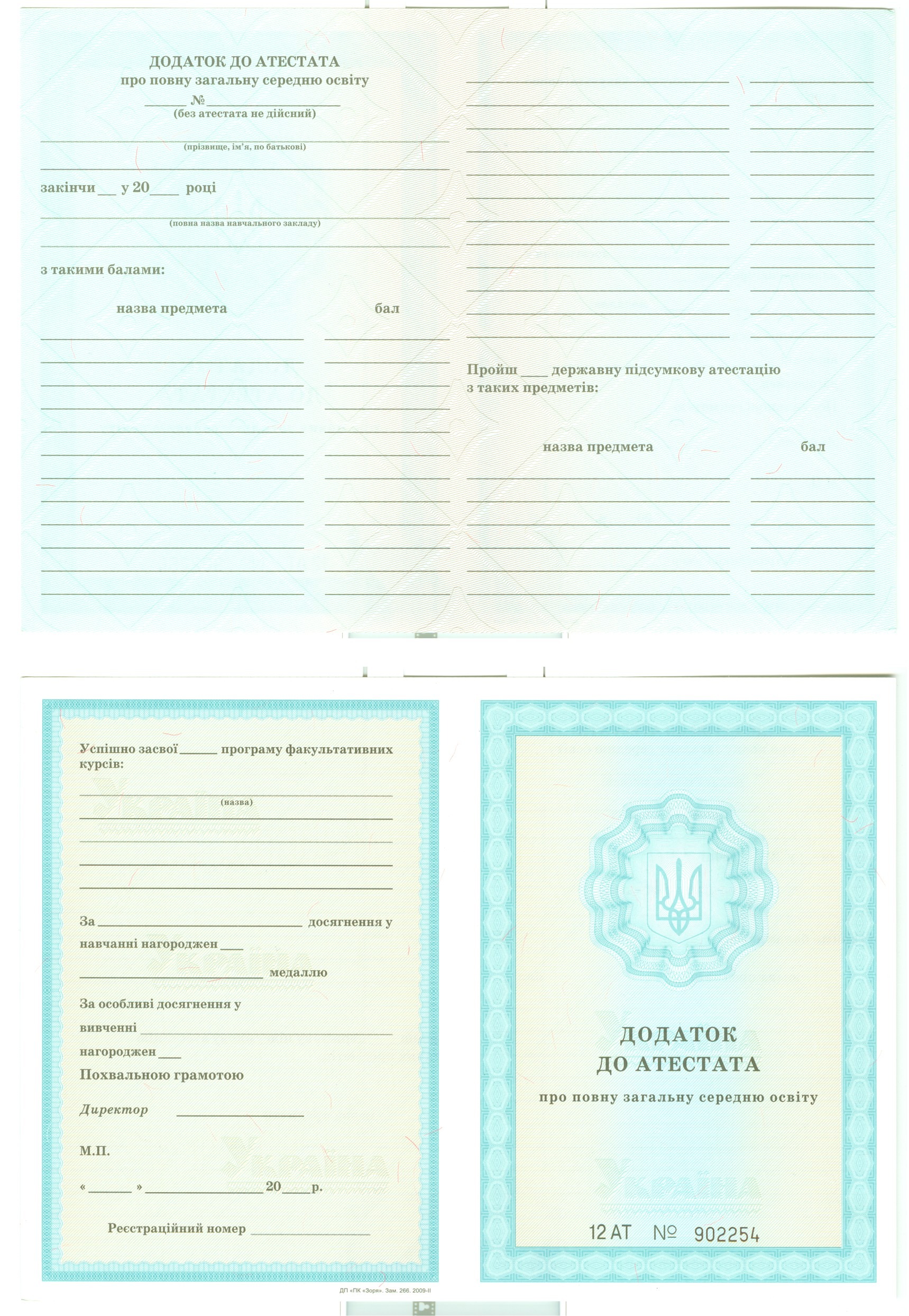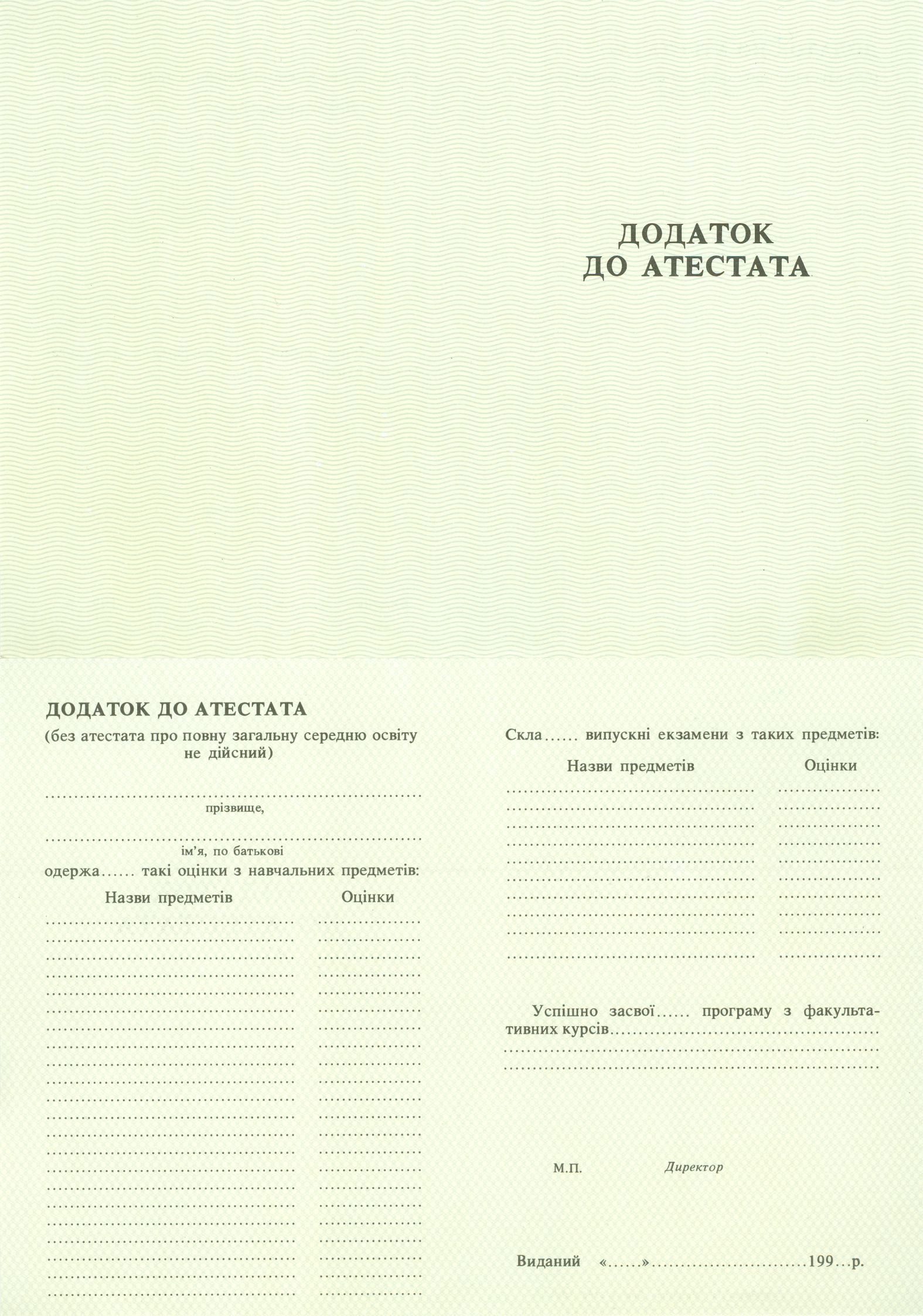 Вид: Додаток до атестата школи. Бланк 2000-2013 р.р.