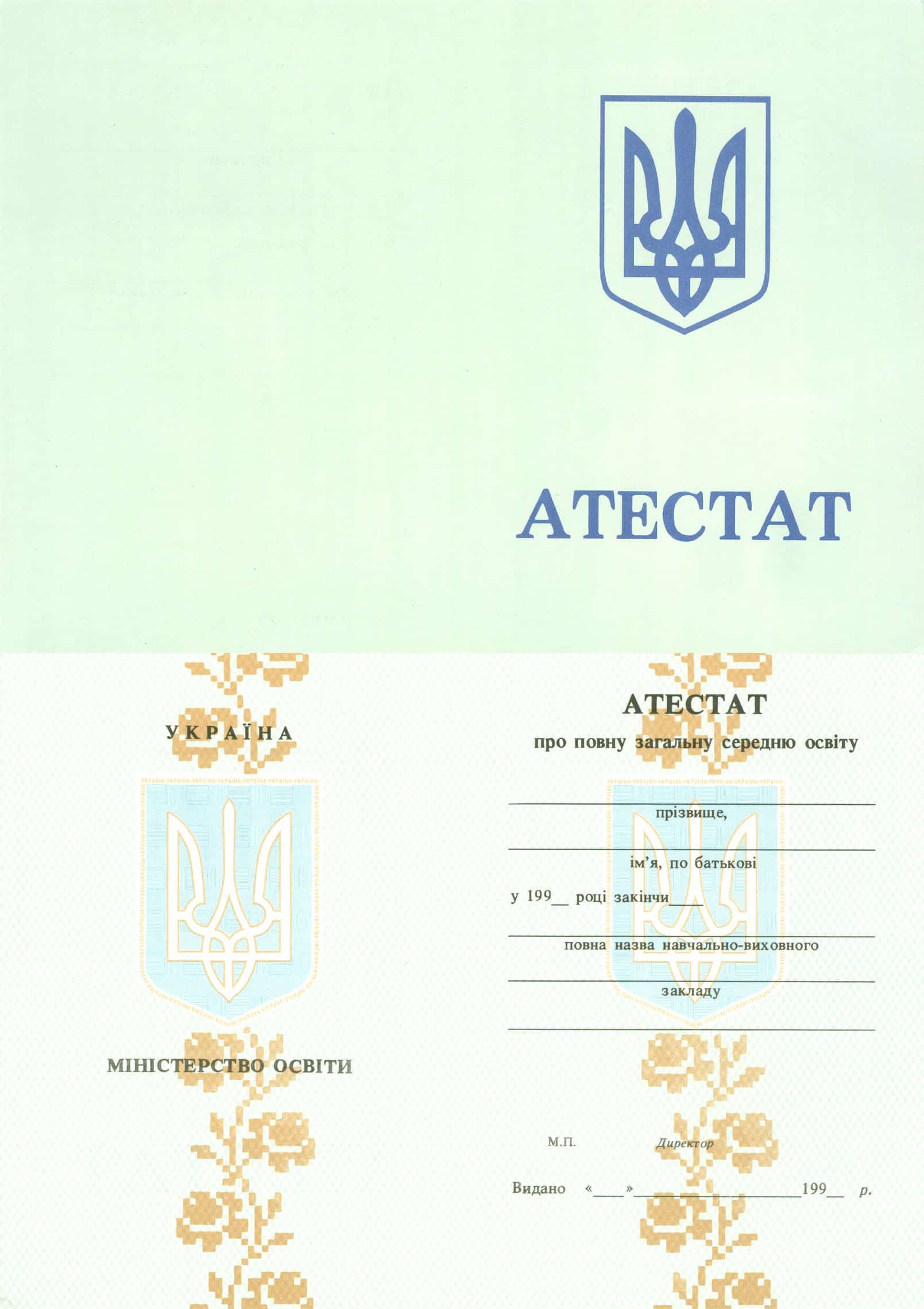 Вид: Атестат школи України на бланку 1993-1999 р.р.