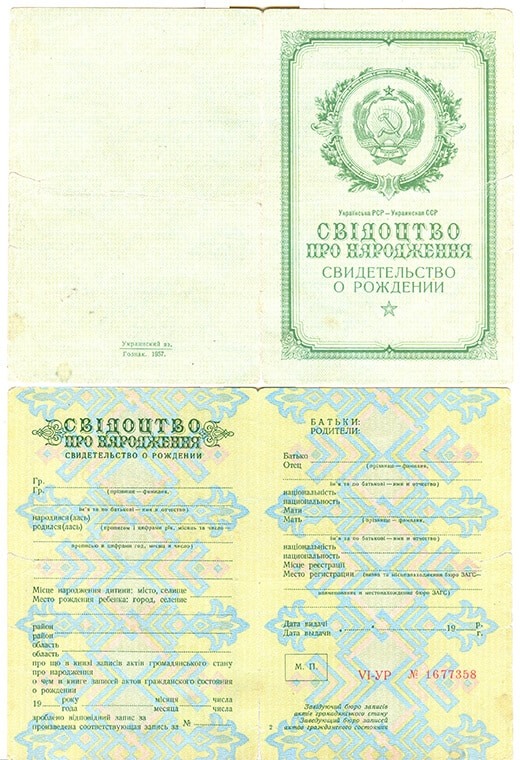 Вид: Купити свідоцтво про народження СРСР від 1970 р.р.