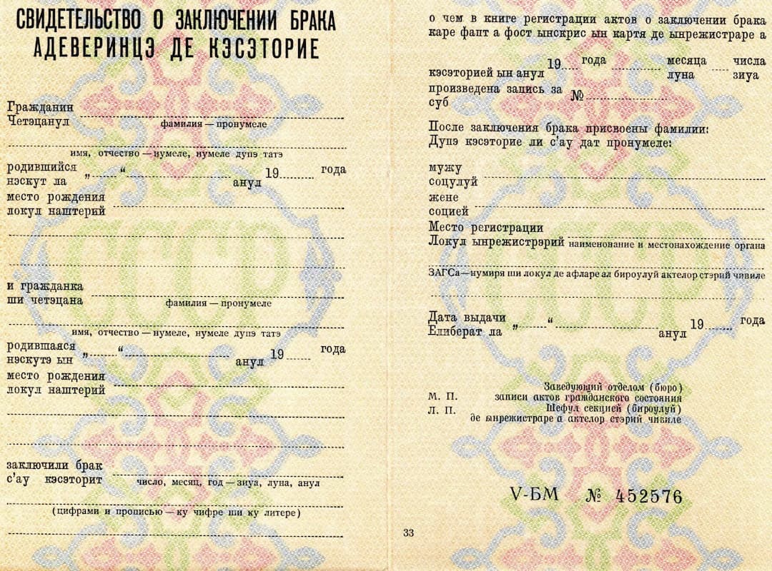 Вид: Купити свідоцтво про шлюб СРСР Молдавії від 1988 р.р.